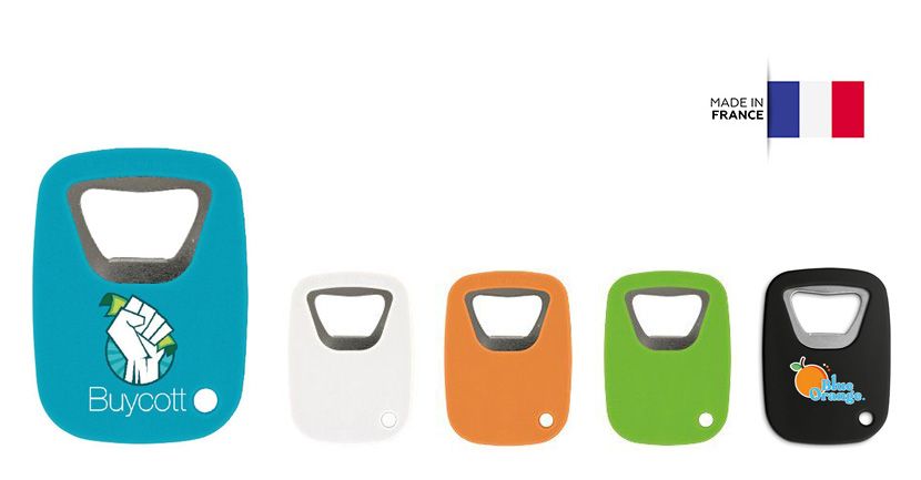 En plastique, fabrication française. Modèle noir recyclé.