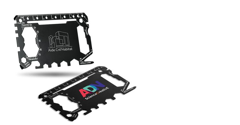 En acier inoxydable, compact et extra plat, elle combine 46 fonctionnalités. Livré sous etuit kraft individuel.