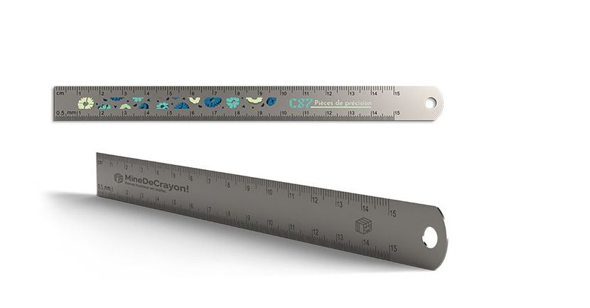 Réglet en acier inoxydable 15 cm utile avec un trou de suspension.